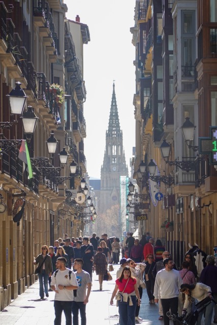 There was a lot of “slow train” planned into this trip. We have come to savor the languorous nature of trains, reading, gazing at the changing landscape, occasionally visiting the cafe car. Arriving well past dark, we were greeted by an unusually quiet city, not the vibrant restaurant and bar scene we’d been promised. Our carefully planned route through the old city marked, with the best pintxos bars, was suddenly useless as we found silent streets and shuttered businesses. Something was clearly amiss, but what?