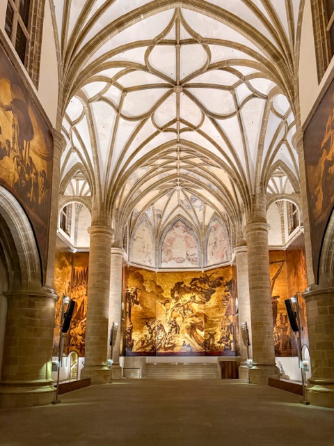 On our last day in San Sebastián we came upon one more manifestation of the Basque embrace and defense of their culture, legends, and myths. We planned a brief visit to the San Telmo Museum. The “brief” part of the plan went out the window as we began exploring this magnificent repository of the regions history and art. It is housed in a 16th century convent that was augmented recently with a steel and glass addition that beautifully mirrors the tug and pull of past and present in the Basque identity. But the moment that brought us to a full stop was walking into what had been the convent’s church. It is a sublimely proportioned, elegantly restrained, space where the walls have been adorned with contemporary impressionistic painting unlike anything we had ever encountered in a church.