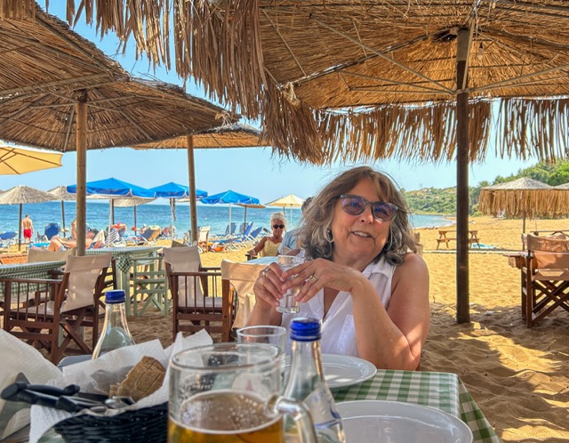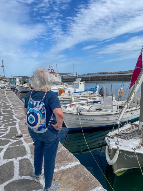 Last May, anticipating our return to Greece to explore a few islands, we asked every Greek we met, “What is your favorite island?” The response was always the same – the name of a favorite beach. As we drove around the island of Paros one day, we drove past many beaches. After a while, Ed stopped the car, we changed to our suits (behind the car) and went for a swim. There were just a few locals nearby doing the same. No umbrellas lined up on the sand, no one to bring a cold drink, no frills…just sand and sea. The sea was calling.