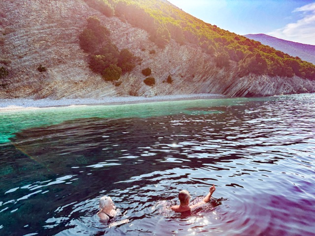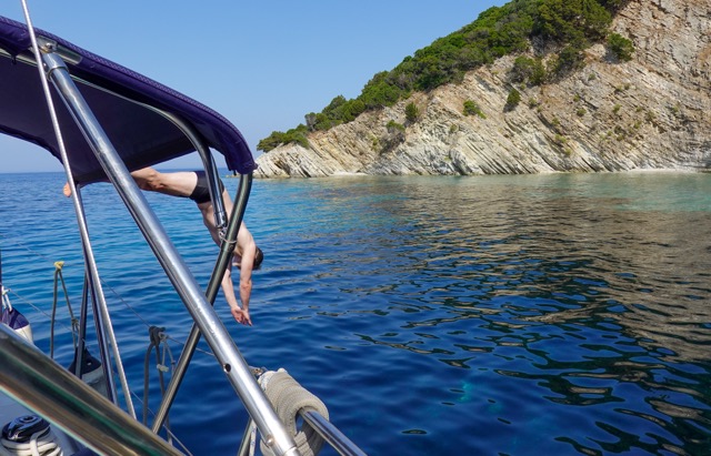 Whether it’s wading into the water from a beautiful sandy beach or jumping in from the side of a boat, there’s no better feeling than being in sea water. We were fortunate to have almost daily opportunities to wade, dive, and swim during our time in Crete, Santorini, and Paros.