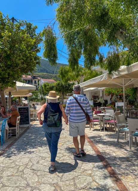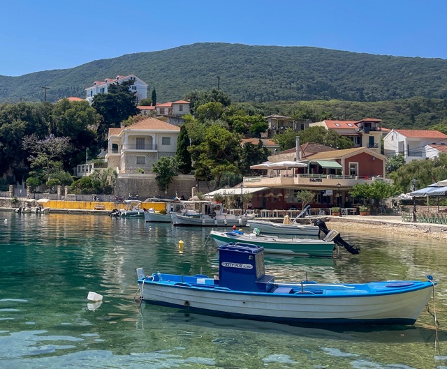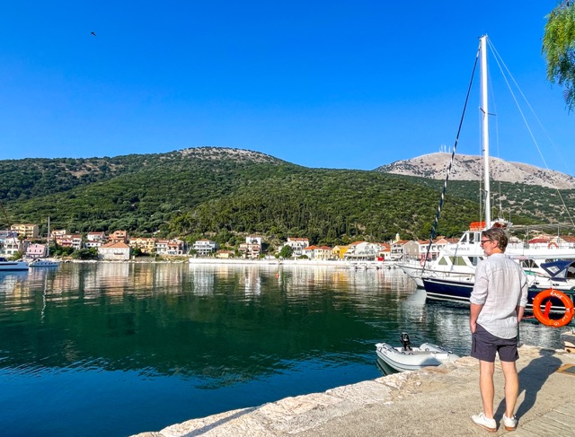 How privileged we are to have had such an inside view of Greek island life! The best tavernas, beaches, shops, wineries, villages and viewpoints were all ours. While Kefalonia receives a significant number of visitors, this is not the tourist mecca that so many of the Greek islands have become with cruise ships inundating the ports, and people jamming the narrow village lanes. It is a rugged landscape of rocks, mountains, chaparral, and forest that is circumscribed by the stunning blue of the Ionian Sea. It was also the place I was required to observe my &#%th birthday. So, to celebrate, we embarked on a day in pursuit of myths and legends on Kefalonia’s famous neighbor – Ithaca.