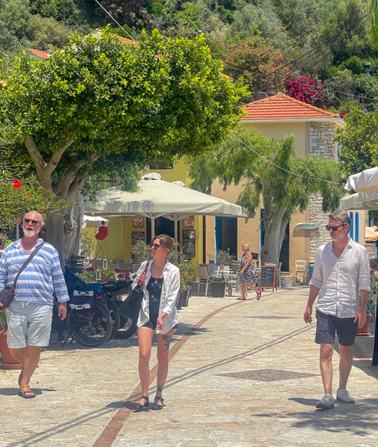 The legacy and stories were too much to resist, and she began rebuilding her ancient family home more than 20 years-ago, exploring its history, reestablishing relationships with local families, hiring local craftsmen, and learning the ways of the island’s agriculture. Slowly, one summer at a time, she has transformed 40 acres of neglected olive trees and vineyards into an estate, and herself from schoolteacher into mistress of the Delaporta legacy. We formally declared her the Duchess of Delaportata. Her hospitality and generosity were extraordinary and made our time on the island a profound experience.