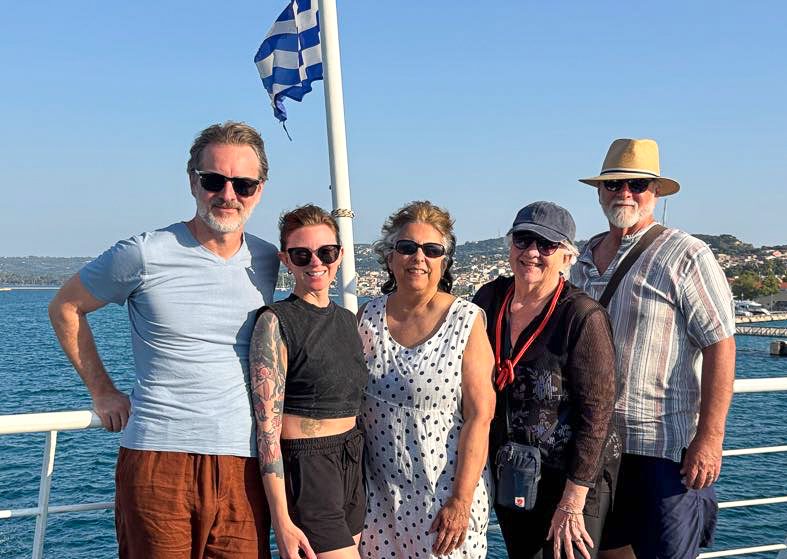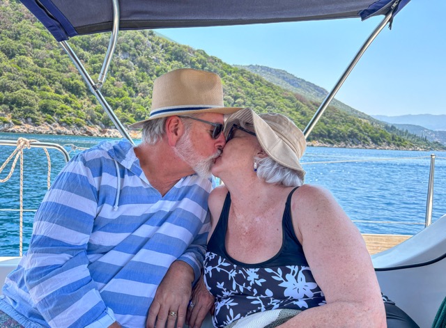 My grandchildren (ages 5, 7, and 9) were arranged in a disheveled tangle around me on the leather sectional, fresh popcorn, pillows and stuffies spilling about. In my best melodramatic voice, I slowly read the chilling description of the Cyclops holding our hero and his men captive in the back of a dark, dank cave, “. . . broad and ugly, with a jutting nose and a thick, heavy brow.” Their rapt faces testified to the enduring power storytelling holds in our lives. I marveled as Homer’s tale of Odysseus’ struggles with sirens, sea monsters, and witches held this newest generation spellbound nearly 3,000 years after it was first recorded in the 8th century, BCE. I have to admit that the story still holds me spellbound! And so it was, with this sweet scene still in my heart, that we set off for the magical islands of the Ionian Sea, home to Odysseus, where Greek gods and legends lurk around every rock. And, of course, another rendevous with Mark and Shannon.